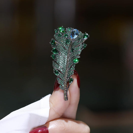 AILONMEI Luxury Feathers Green Brooch Jewelry For Woman Fashion
